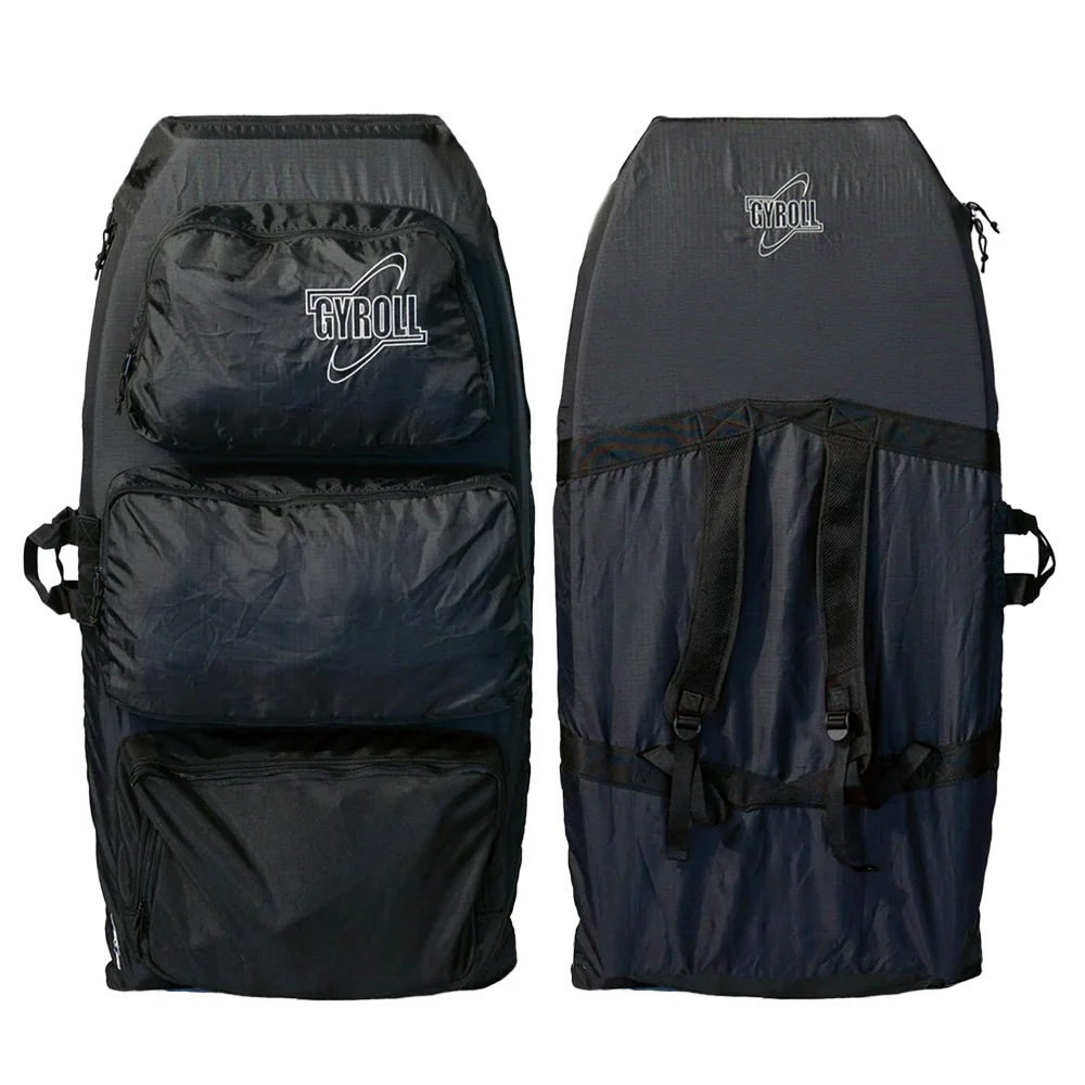 Designed By Mike Stewart The Gyroll Tri Pouch Travel Bag is a 2-3 capacity board bag designed for plane travel.Constructed from a durable heavy guage composite fabric, It has three external pockets for your wetsuits, fins and accessories son you can really load this up. Use the padded back-pack straps for serious treking or the padded shoulder strap for an easy transit.