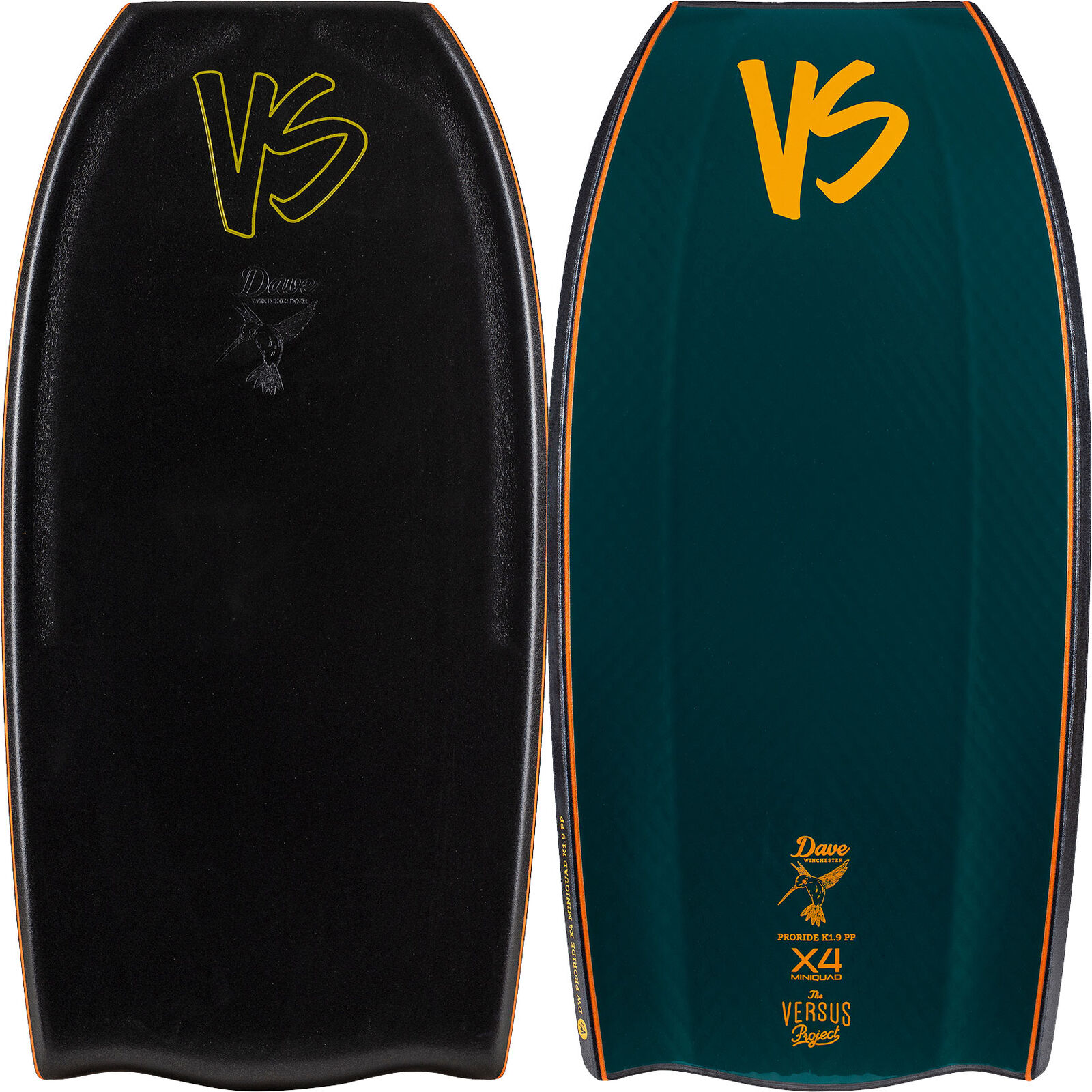 VS BODYBOARDS Dave Winchester Pro Ride X4 Mini Quad Concave Polypro Core Bat Tail Bodyboard - 2025/26 Model