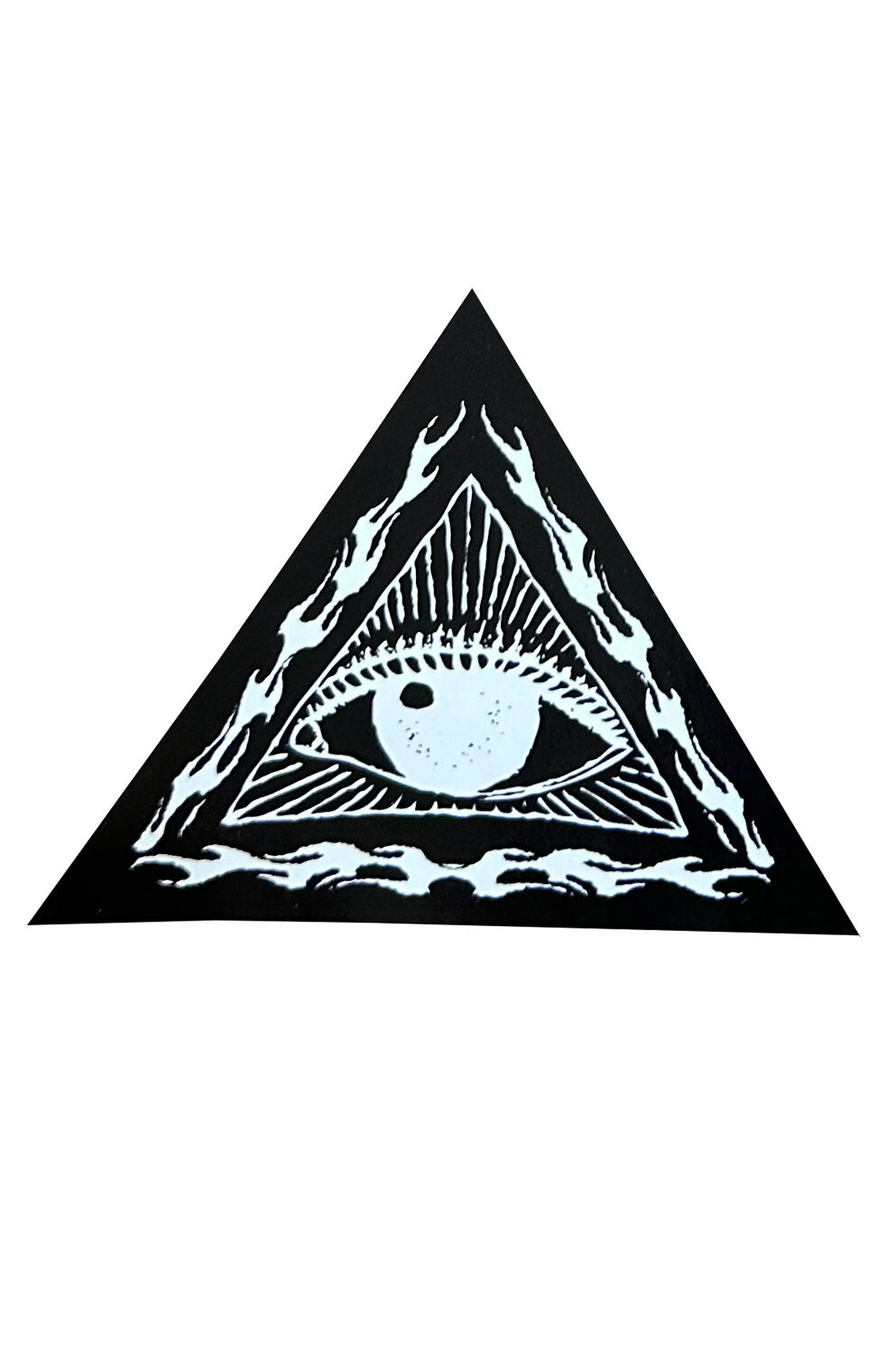 -The all seeing eyed pyramid with wings encased by a thin circle of convolution on vinyl.